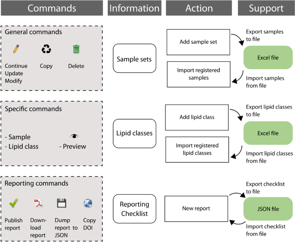 - Data for lipid classes (i.e. their identification, quantification) are stored and may either be added, copied or modified.